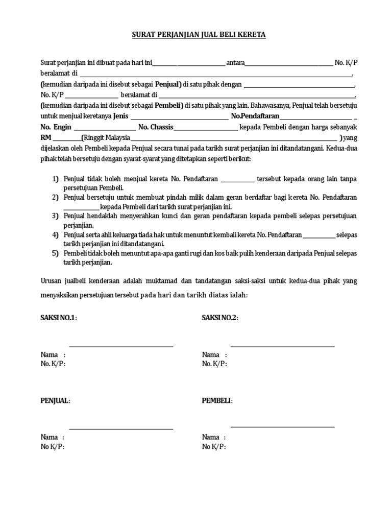 Dokumen yang perlu disediakan untuk beli kereta. Check spelling or type a new query. We did not find results for: Maybe you would like to learn more about one of these?
