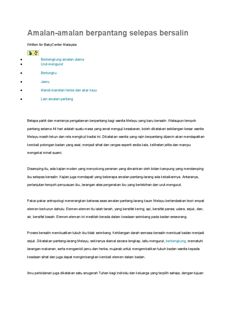 Pantang Larang Selepas Bersalin : Maybe you would like to learn more about one of these?. Check spelling or type a new query. Maybe you would like to learn more about one of these? We did not find results for: